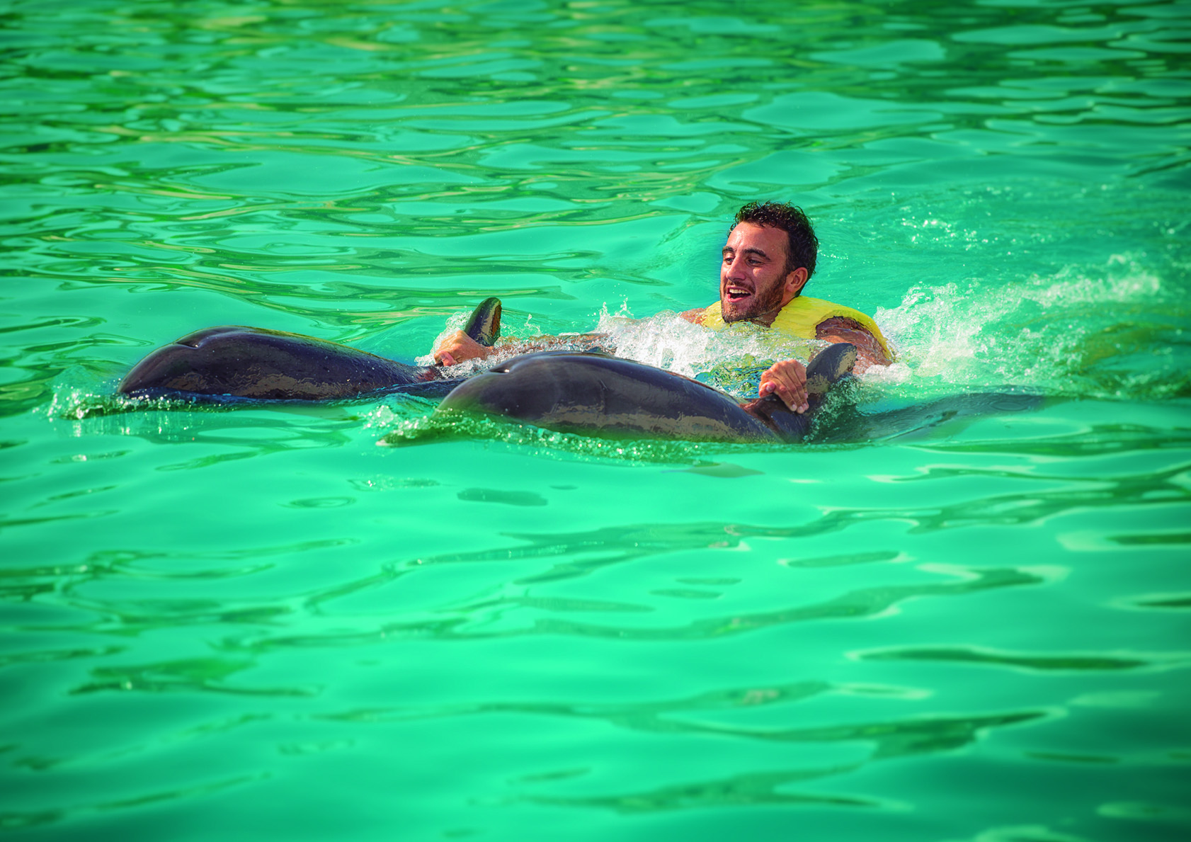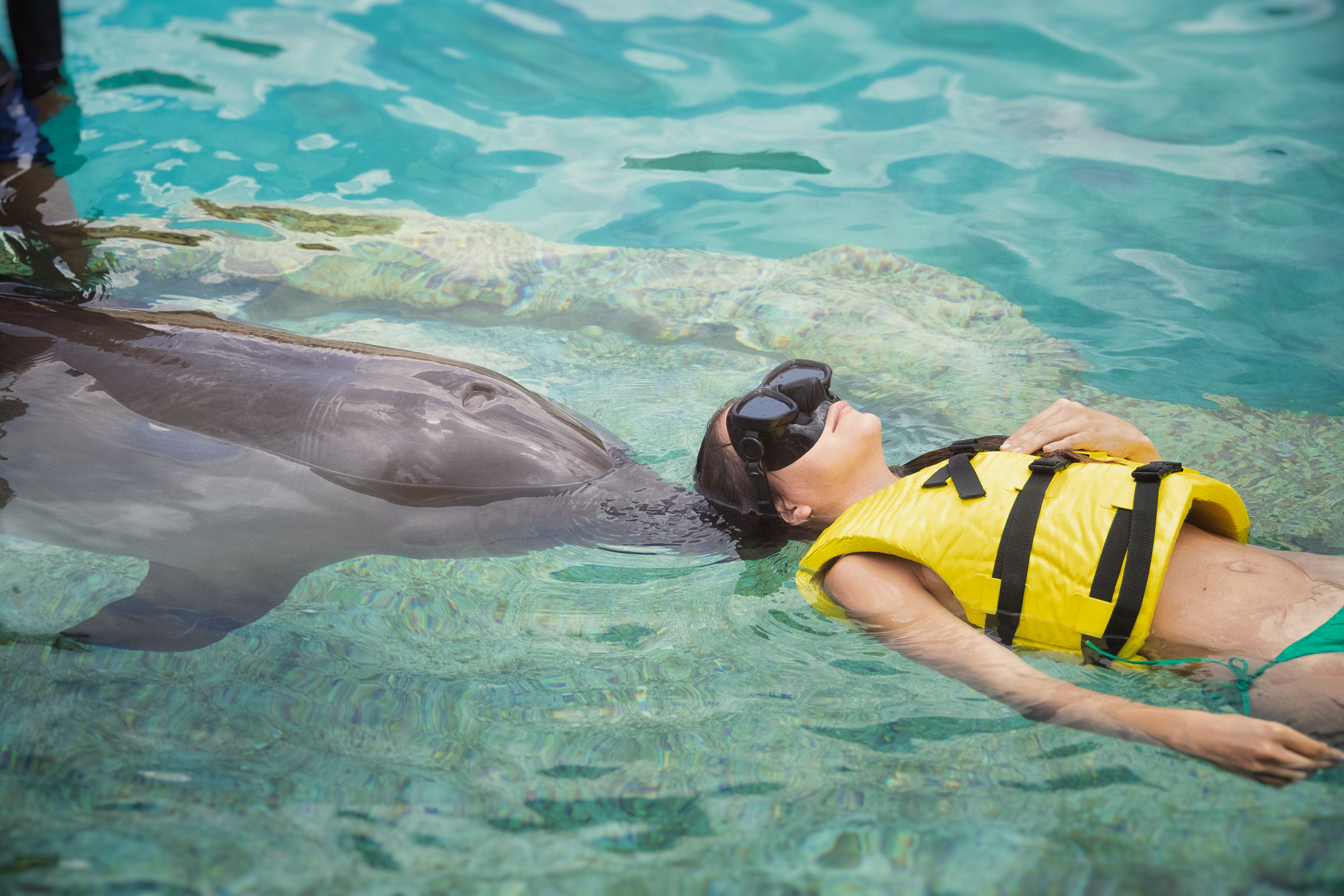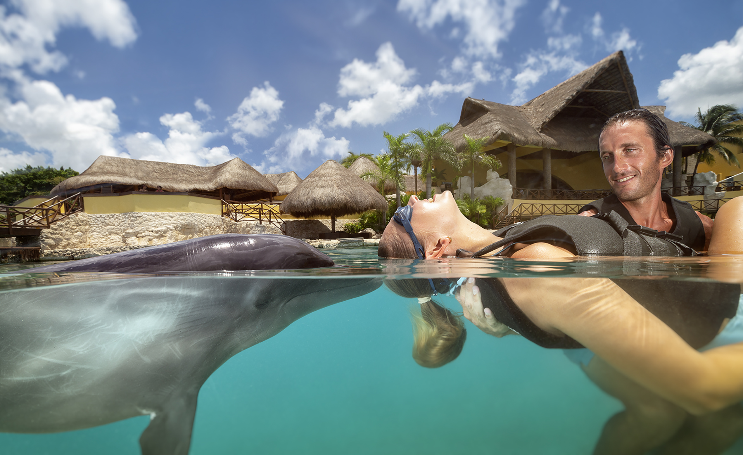 Dolphinaris offers you the opportunity to swim with dolphins. Come with us and get a once in a lifetime experience in Mexico. Choose the Dolphin Swim Experience that best suits you and enjoy swimming with them at the world’s best Dolphinariums. Make your dream come true and experience a majestic dolphin encounter with your family.