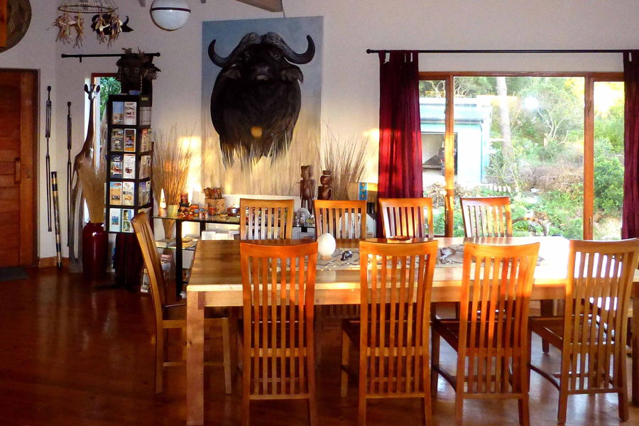 From the Main Road N2, turn onto George Rex Drive. The third street left onto the Marlin Drive. Just carry on and the road name changes into Barrcuda Street. Nearly at the end turn left onto Glajoen Street.Look for Panorama Lodge.