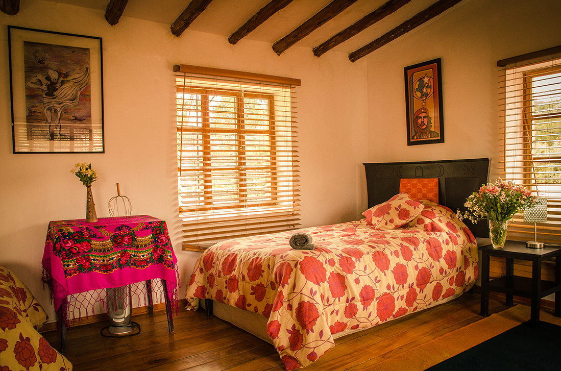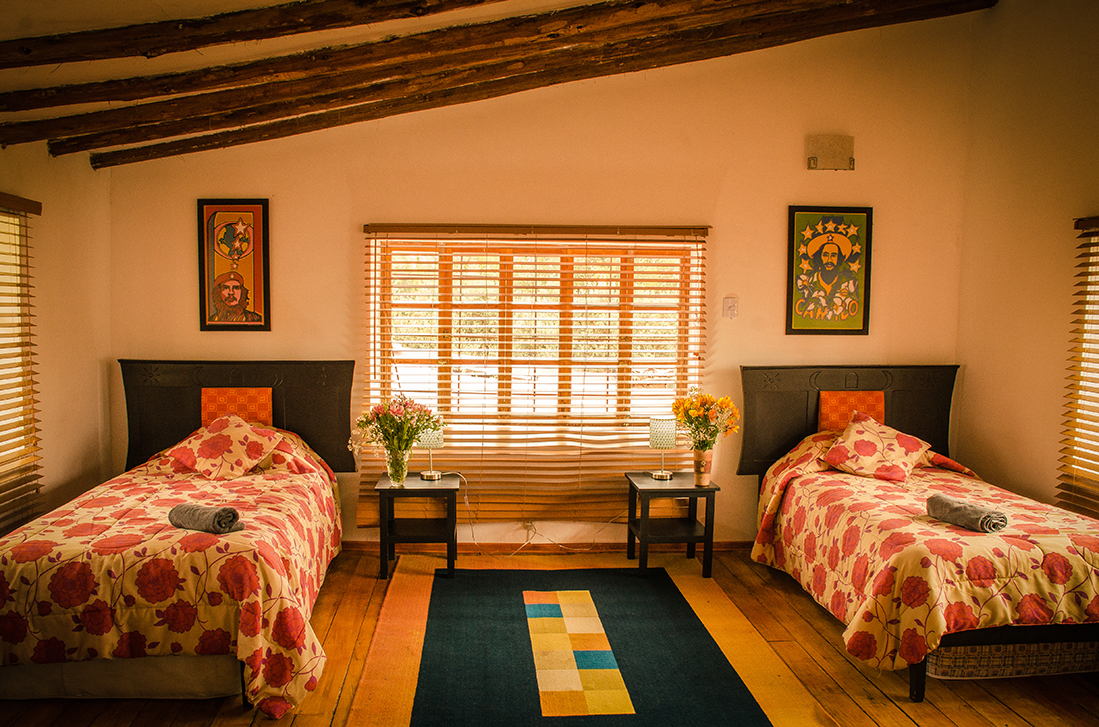 Taxi from Center costs 15 soles with Ruben 973195551,20 minutes from town, and from airport 30 soles. Or call Lesley at 974792316 to arrange. Address is A7 Tambillo, Cusco, in front of the Temple of the Moon.