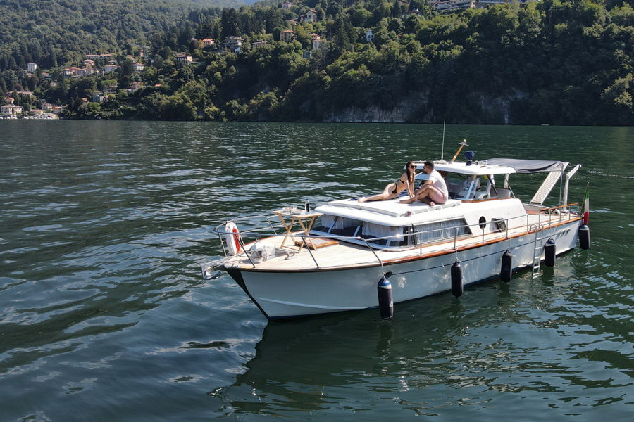 MIZAR III is a fascinating 10-meter vintage motoryacht entirely made of wood by Cantieri Navali Picchiotti of Viareggio in 1961 and launched in 1962. An extremely comfortable cabin cruiser equipped with a large cockpit with table and seats, an agreable sundeck in the bow with mattresses and cushions, a large dinette with a table that can be converted into bunks, a 2-seater master cabin, kitchenette and bathroom in a separate room. The boat, the first and only of its kind on Lake Como, can accomodate up to 6 people, besides the crew. We will cruise in maximum comfort, at speed of 10 knots so you can calmly enjoy the beauties of Lake Como. · private tours for an unforgettable day on the lake · mini cruises for birthday parties, engagements, anniversaries · special evenings with a stop for dinner and return in the moonlight · photographic services for weddings and ceremonies · evenings tours for fireworks and other events on the lake · companies services at meetings and fairs, product presentations, photographic and video services.